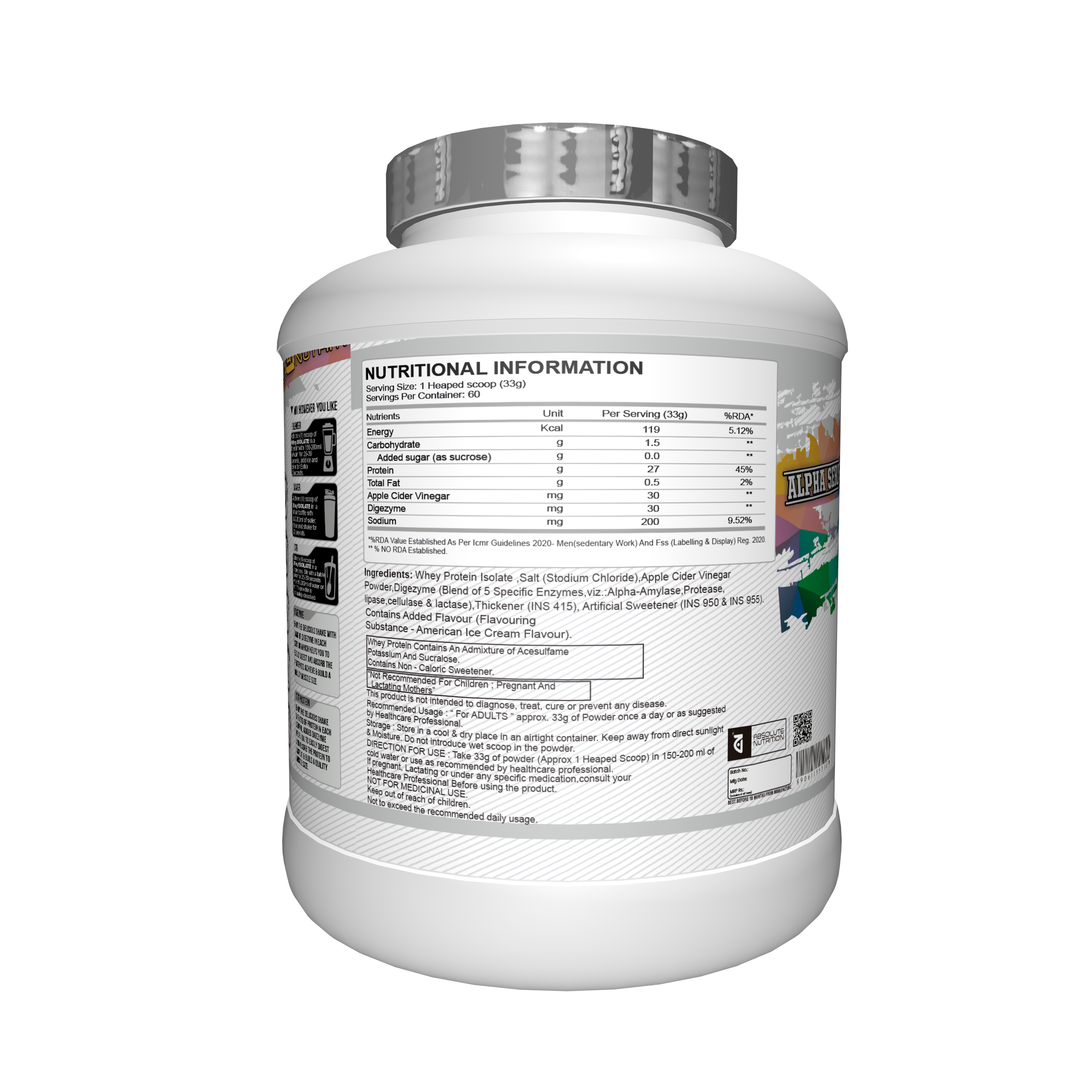 Absolute Nutrition’s premium Alpha Series ‘Isolate Whey’ is offers a premium 27G of protein per serving.
