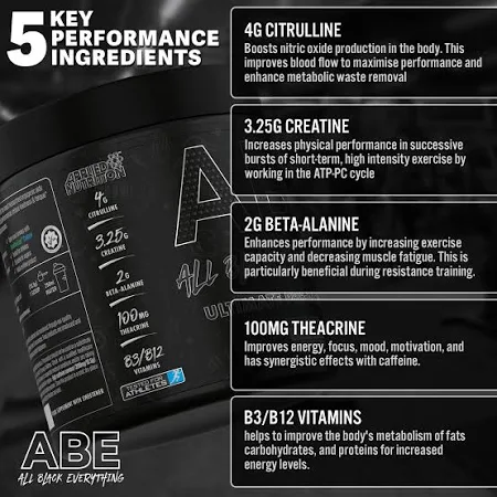 ABE delivers a unABE delivers a unABE Delivers a unique blend of the most vital and researched active ingredients known to help increase physicalincrease performance*, reduce tiredness & fatigue* and provide continual focus throughout your training, maximiztraining your body’s potential. However talk is cheap and the proof is in the product, after extensive rresearch meticulous formulating , and precise lab testing we are confident to let ABE do the talking