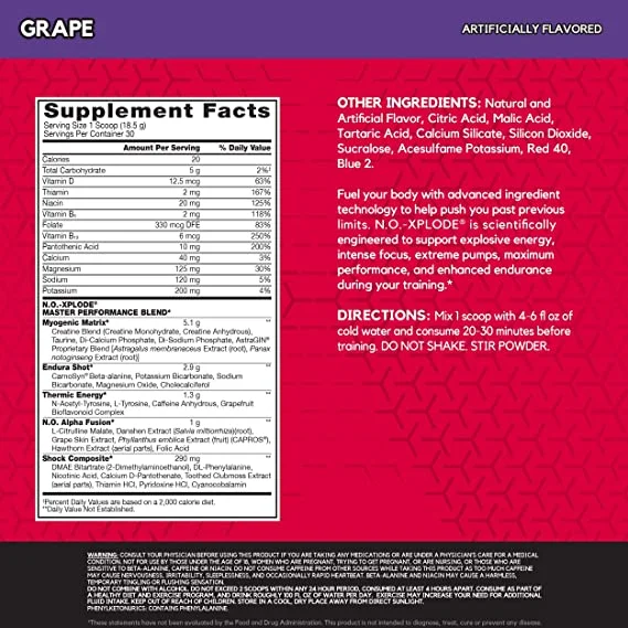 Now with 275mg of caffeine, N.O.-XPLODE® will give you the energy and focus needed to help maximize every minute of your workout. BSN® has enhanced the Thermic Energy blend so you can push your workout intensity to new levels.*