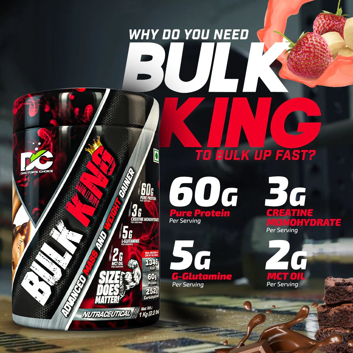 More protein and more calories are required to develop those gigantic shoulders and biceps. People wanting to gain weight do not receive enough nutrients just from food alone and thus have a tough time to achieve the desired body. BULKING is one of the finest gainers launched by Doctor's Choice specifically for those who experience difficulties to gain weight and bulk up quickly. It provides 1244 kcal energy 60 g of protein and 250g of carbs when mixed with 900ml- l L of water and will keep you satiated. It contains MCT Oil, which increases appetite and makes it simpler to consume the additional calories required to gain weight quickly. Bulking can be consumed as a Post workout meal as it is a high-calorie bodybuilding shake with adequate amount of carbohydrates, high quality muscle building protein, creatine, and glutamine to accelerate your muscle growth