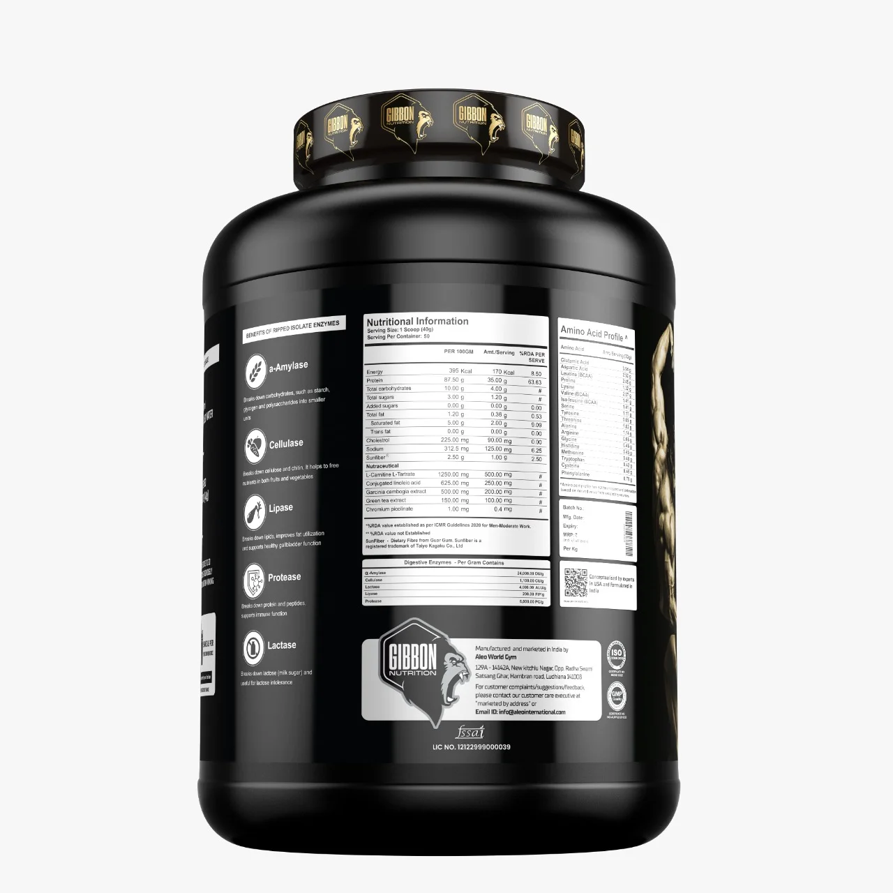 Digestive Enzymes (a-Amylase, Cellulase, Lipase, Protease, Lactase): Powerful enzymes that enhance digestion and optimize nutrient absorption.