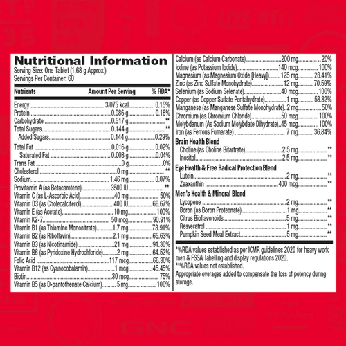 Complete multivitamin formula tailored for men’s needs. Scientifically designed for optimal nutrient absorption. One-tablet-a-day convenience for busy lifestyles. Supports active living and performance goals.