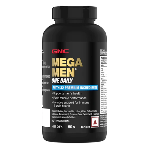 GNC Mega Men One Daily is a premium multivitamin specially formulated for men to support energy, immunity, and overall wellness. Packed with essential vitamins, minerals, and antioxidants, it helps maintain vitality, muscle health, and mental focus for an active lifestyle.