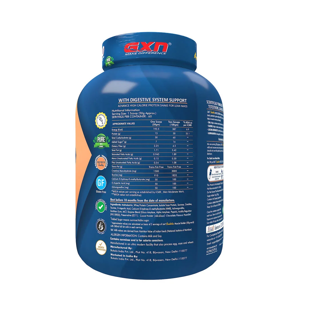 GXN Anabolic Muscle Builder is formulated with high grade imported natural and nature identical flavours (Chocolate Cake, American Ice Cream) for first in class taste.