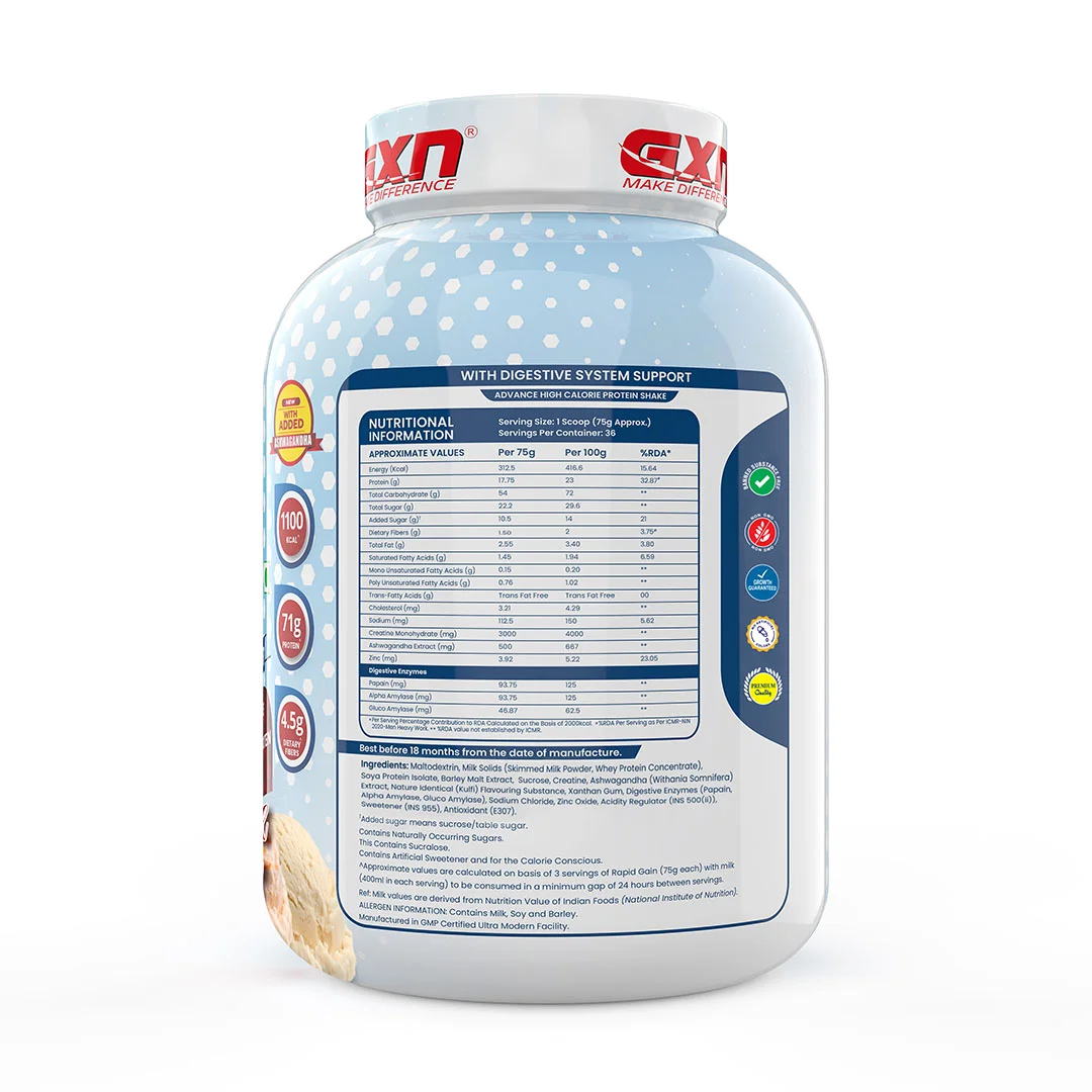 Benefits of using GXN Rapid Gain Mass Gainer: