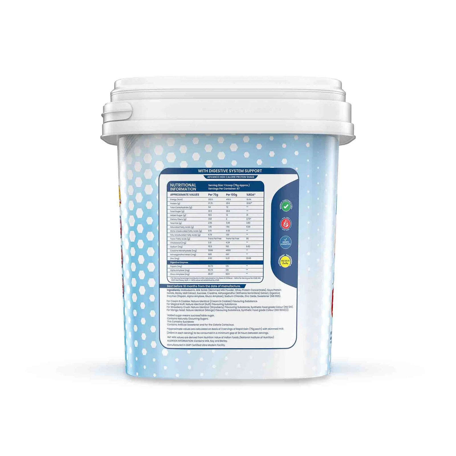 That is why the best mass gainer supplements like Rapid Gain are required. It helps you to increase your weight as well as your muscle mass. It has both carbs as well as protein in it. Rapid Gain mass gainer contains protein from four different sources, complex carbs, digestive enzymes, and minerals which helps in muscle recovery and helps in gaining mass. Minerals in a mass gainer relieve muscle fatigue post-workout by enhancing biochemical reactions in the body for energy. If you have a goal to gain significant muscle mass in a month than Rapid Gain is for you.