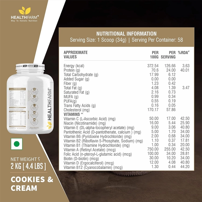 HealthFarm Whey Protein Plus with Added Vitamins is the ultimate protein supplement that takes your nutrition to the next level. This premium product combines the power of whey protein with essential vitamins, providing a comprehensive solution to support your fitness goals and overall well-being. With each serving of HealthFarm Whey Protein Plus, you'll enjoy a generous dose of high-quality whey protein, delivering 24 grams of pure protein. This protein source is carefully selected to ensure optimal bioavailability and absorption, allowing your body to effectively utilize the amino acids it needs for muscle repair and growth.