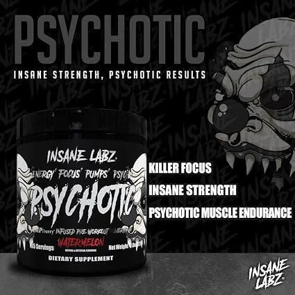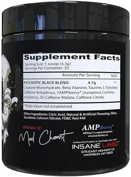 Introducing the newest addition to the Psychotic Family of pre workouts, Psychotic Black! Much like our OG Psychotic, Black is going to give you increased focus, insane energy and boost your strength output in the gym. With less caffeine, Psychotic Black is Ideal for those who need that extra push but want a lower stim pre workout.