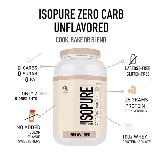 - What Is It: Unflavoured ISOPURE zero carb protein powder! One scoop easily mixes in your favorite beverage or food for a high-protein treat. Offer Pack (with complimentary 7-day personalized fitness plan)