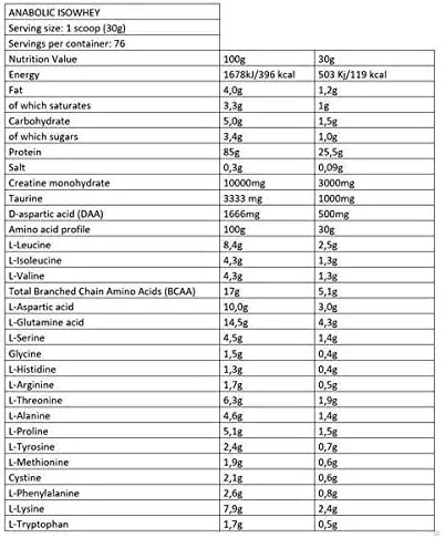 LEVRONE ANABOLIC ISO WHEY is a high class protein supplement which allows you to enrich your daily diet with whey protein isolate (WPI). The product has been prepared from the highest quality tested materials, and the form of easily soluble powder ensures trouble-free solubility of the supplement during preparation. The protein used in the formula has a high content of valuable amino acids. The formula has been additionally enriched with DAA, creatine monohydrate and taurine, which may prove to be a valuable support in the diet of physically active persons. The product is recommended for amateurs and professionals.