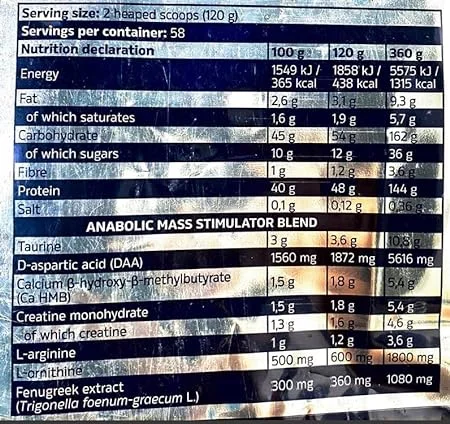 Gainer LEVRONE ANABOLIC MASS is an exceptional combination of a complex of complete proteins and carbohydrates, supplemented with a number of valuable additives. The supplement has been prepared for people aiming to increase their body mass and develop a muscular physique, especially fans of intensive strength and endurance training. The formula has been enriched with e.g. creatine monohydrate, DAA, HMB, fenugreek extract or taurine, providing multidimensional support in even the most intensive efforts to increase muscle mass and strength. The nutrient, in the form of an easily dissolvable powder, makes it possible to prepare an exceptionally tasty shake, which will help you meet the objectives of your nutrition plan and balanced diet.