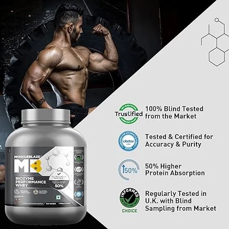 MuscleBlaze Biozyme Performance Whey is crafted exclusively for fitness and muscle-building champions who want their protein supplement to be as effective as their efforts. It is scientifically designed with Enhanced Absorption Formula (EAF®) to maximize the bioavailability of protein for the Indian bodies. It’s a part of MB’s pioneering innovation- the BIOZYME series. The other fitness supplements in this iconic series are Biozyme Whey Iso-Zero & Biozyme Whey Protein.