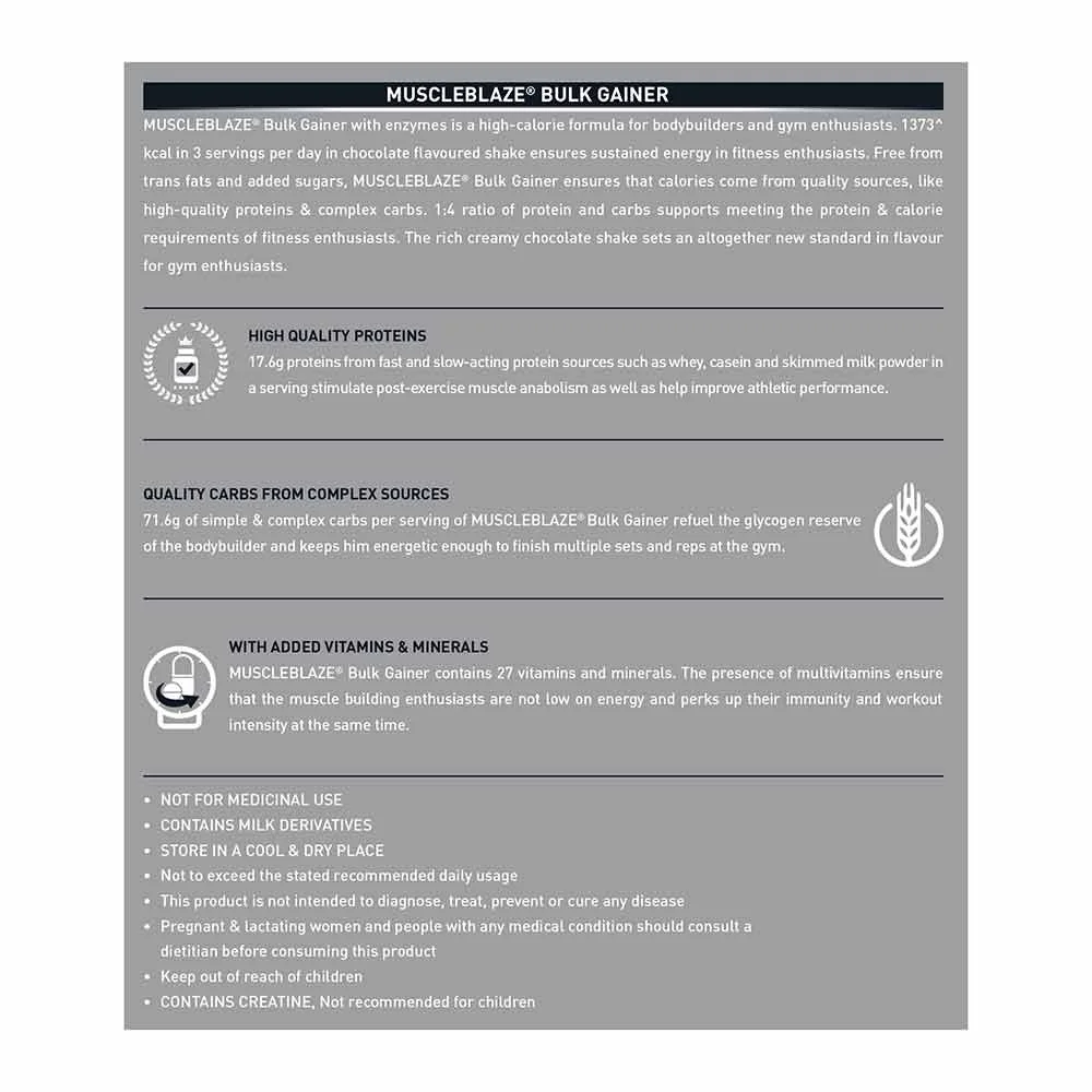 •  MuscleBlaze Bulk Gainer 6.6 lb Chocolate is a high-calorie gainer for gym enthusiasts and bodybuilders