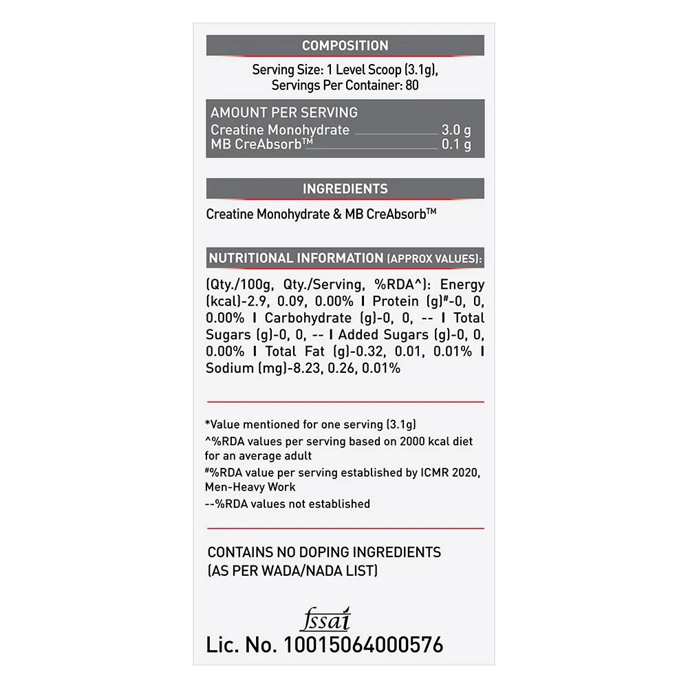 MUSCLEBLAZE CREATINE MONOHYDRATE, 0.55 LB Unflavoured