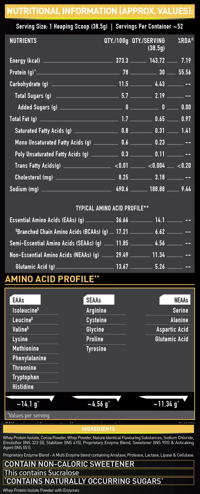 Per 38.5gm of 52 servings Contains*