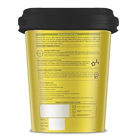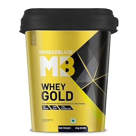 - A great source of pure whey protein isolate: With MuscleBlaze Whey Gold, you get 30g of pure whey protein isolates in every serving. These fast acting proteins are ideal for a post workout supplement as they load your muscles with the nutrients that they need. The result is that your muscles are able to grow in size faster and are also able to recover from any heavy training. With whey protein isolates, you do not have to worry about additional calories from carbs or other nutrients, making it the most effective supplement for you.