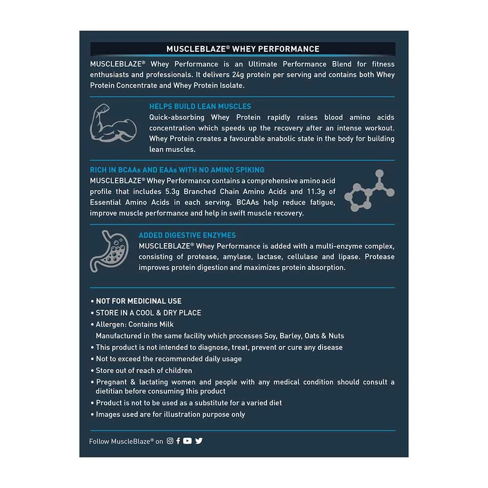 - Zero Added Sugar & Zero Trans Fats: MuscleBlaze Whey Performance delivers only what is good for you, and therefore, it is free from any kind of added sugar and trans-fats.