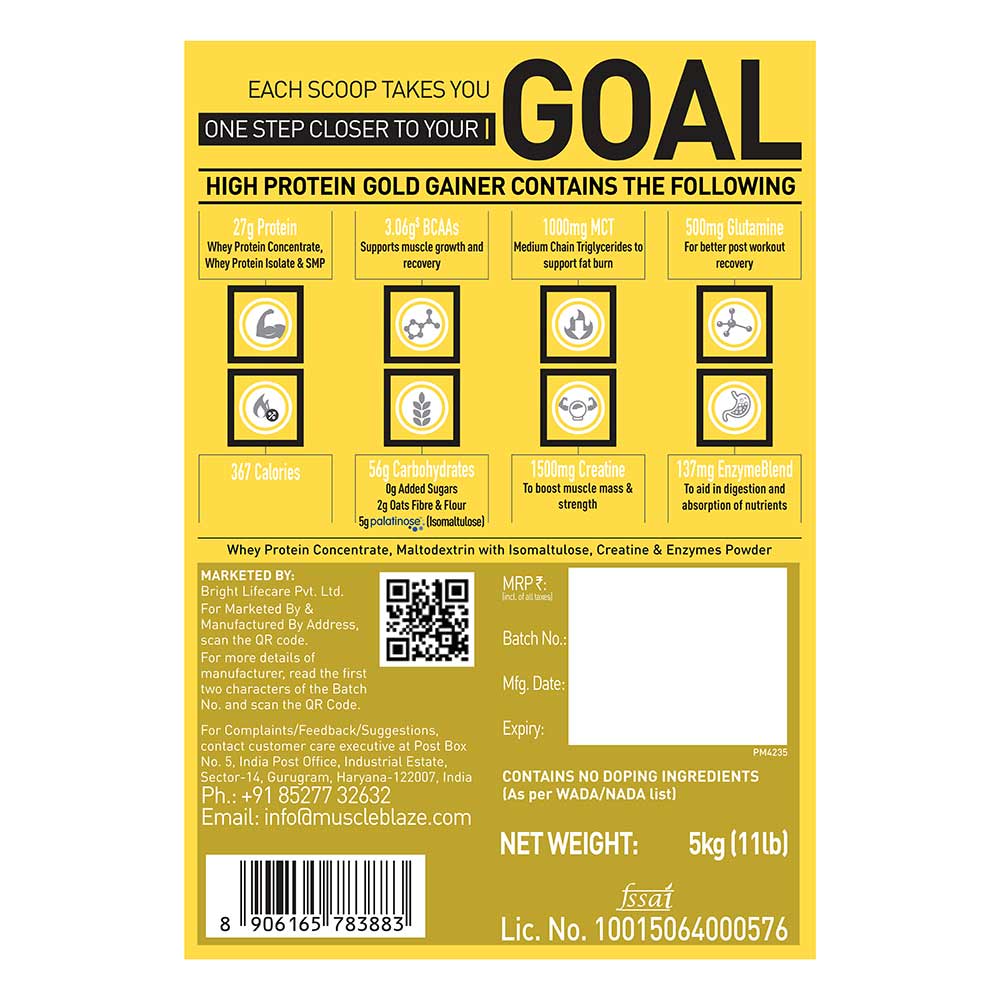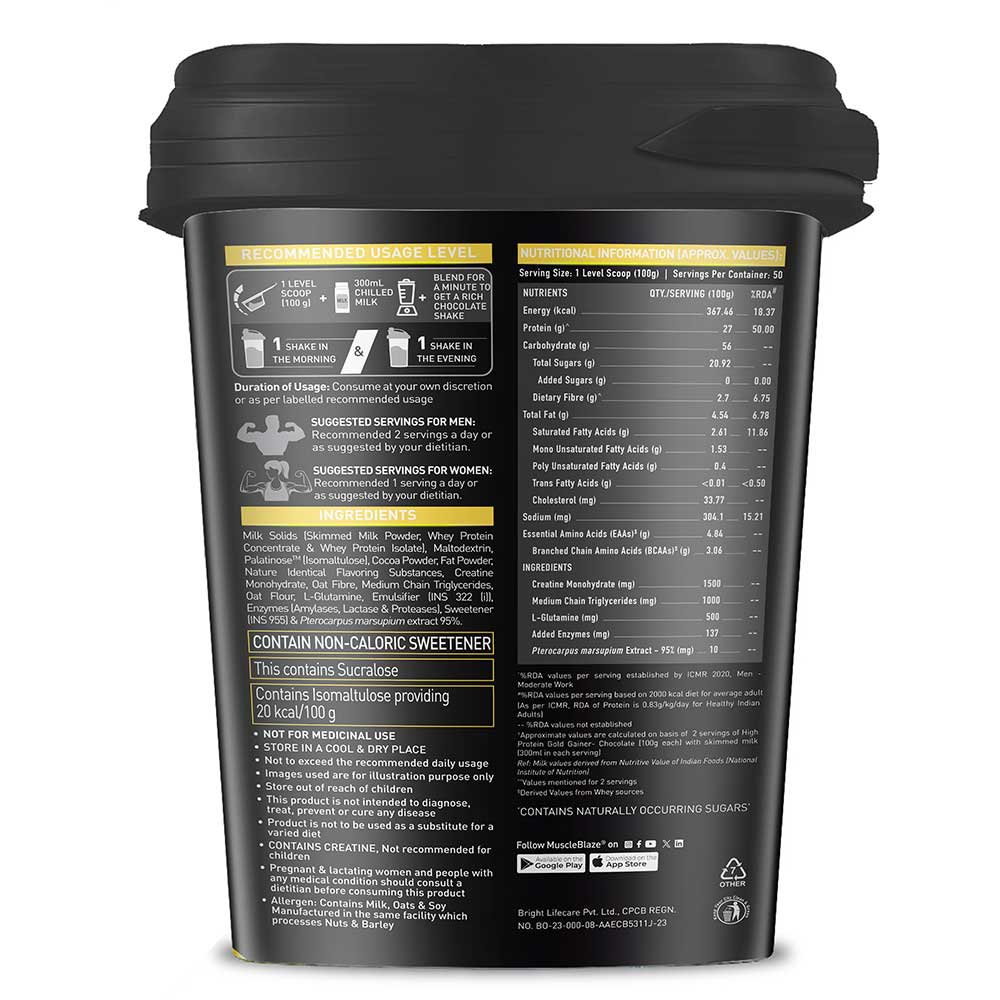 - Weight gain: MuscleBlaze High Protein Gold Gainer Chocolate is formulated to aid in weight growth as a result of its ample supply of calories and a healthy mix of macronutrients. Those with high caloric demands or who struggle to get enough calories from their usual diets would benefit the most from this.