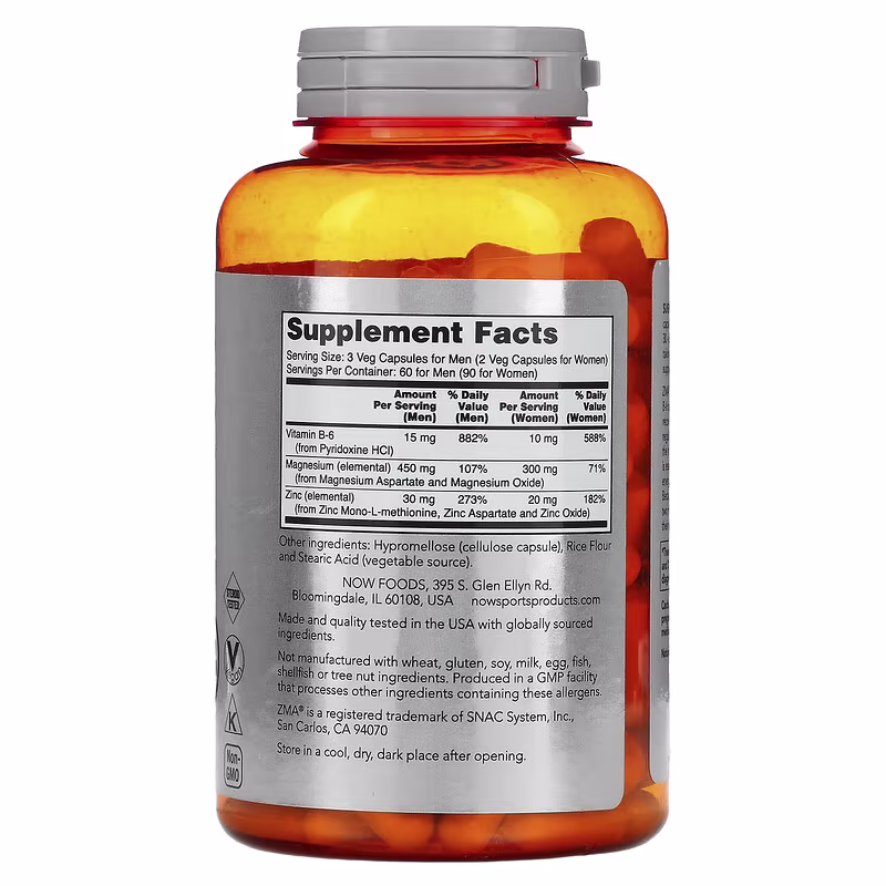 ZMA is a synergistic combination of Zinc and Magnesium designed to maximize absorption and promote recovery from exercise. Zinc plays a central role in the regulation of cellular growth and tissue repair, as well as the maintenance of a healthy immune system. Magnesium is essential for the maintenance of electrolyte balance, energy production and normal neuro-muscular function. Because physical activity can increase the need for these two minerals, NOW ZMA is the ideal supplement to aid in their replenishment.*
