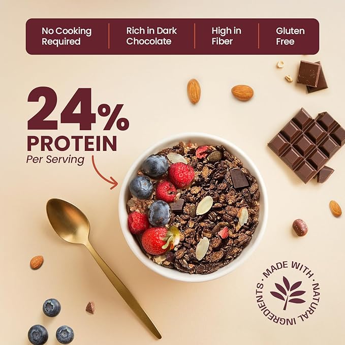 - FIBRE BOOST: With a generous amount of dietary fibre, chocolate museli supports a healthy digestive system and promotes a feeling of fullness, helping you manage your weight effectively. This fibre-rich muesli keeps you satisfied longer, reducing the urge to snack between meals.