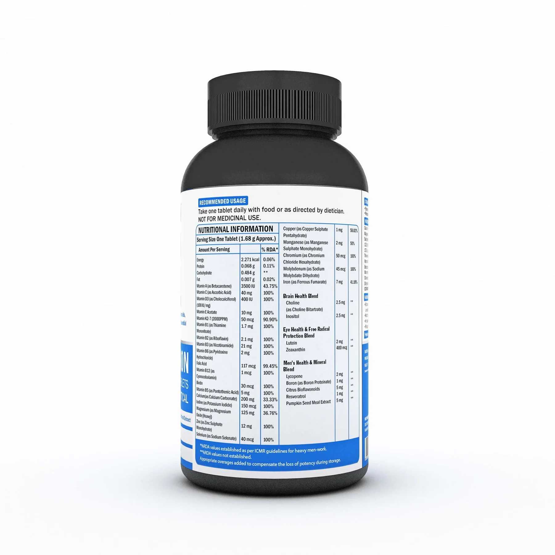 Complete blend of essential vitamins and minerals for men. Formulated to support active lifestyles and energy needs. Easy-to-swallow tablets for daily convenience. Scientifically developed for safety, potency, and effectiveness.