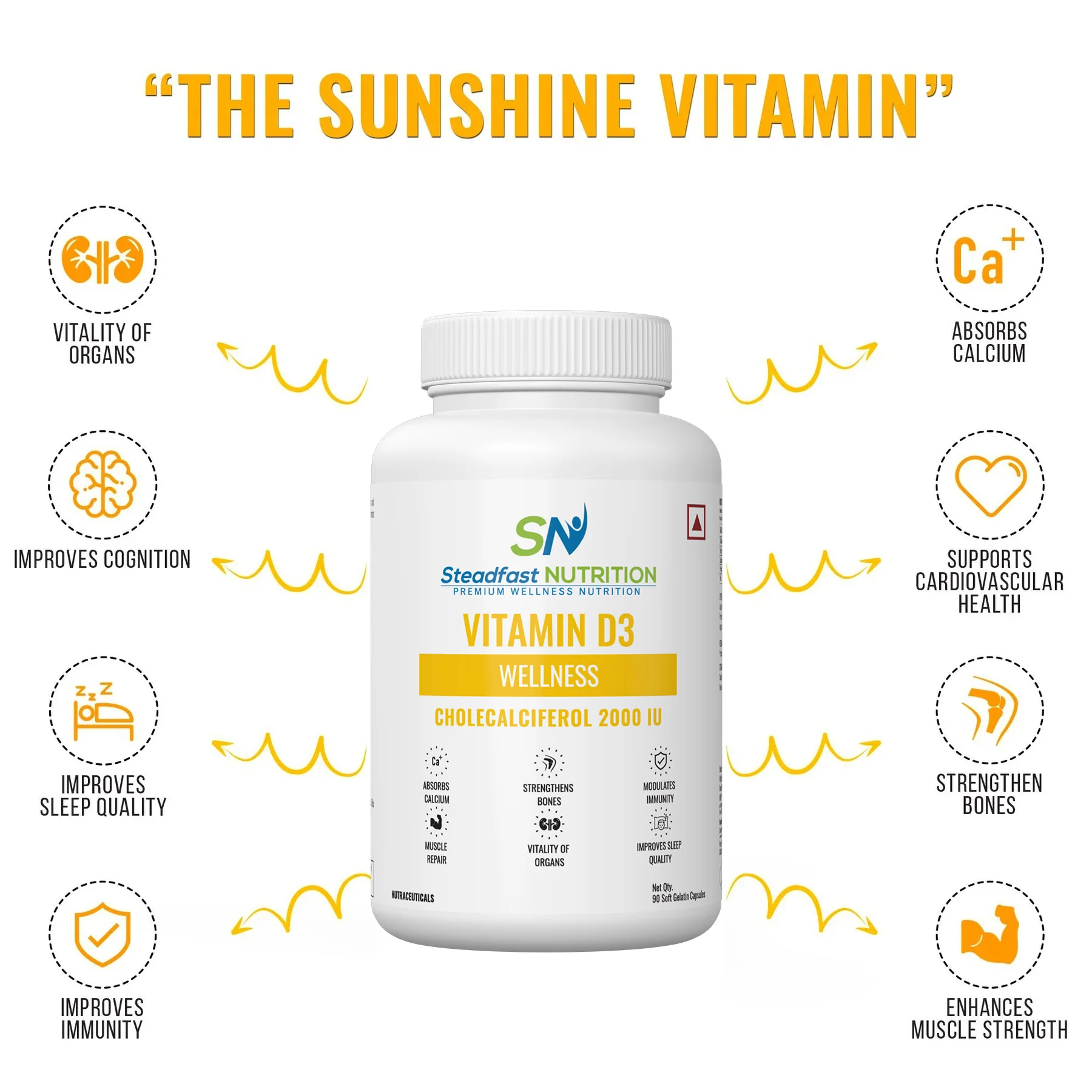 Contains pure, bioavailable Vitamin D3 for maximum absorption. Ideal for athletes, fitness enthusiasts, and everyday wellness. Trusted Steadfast quality and clinically backed formulation. Easy-to-swallow capsules for convenient daily use.