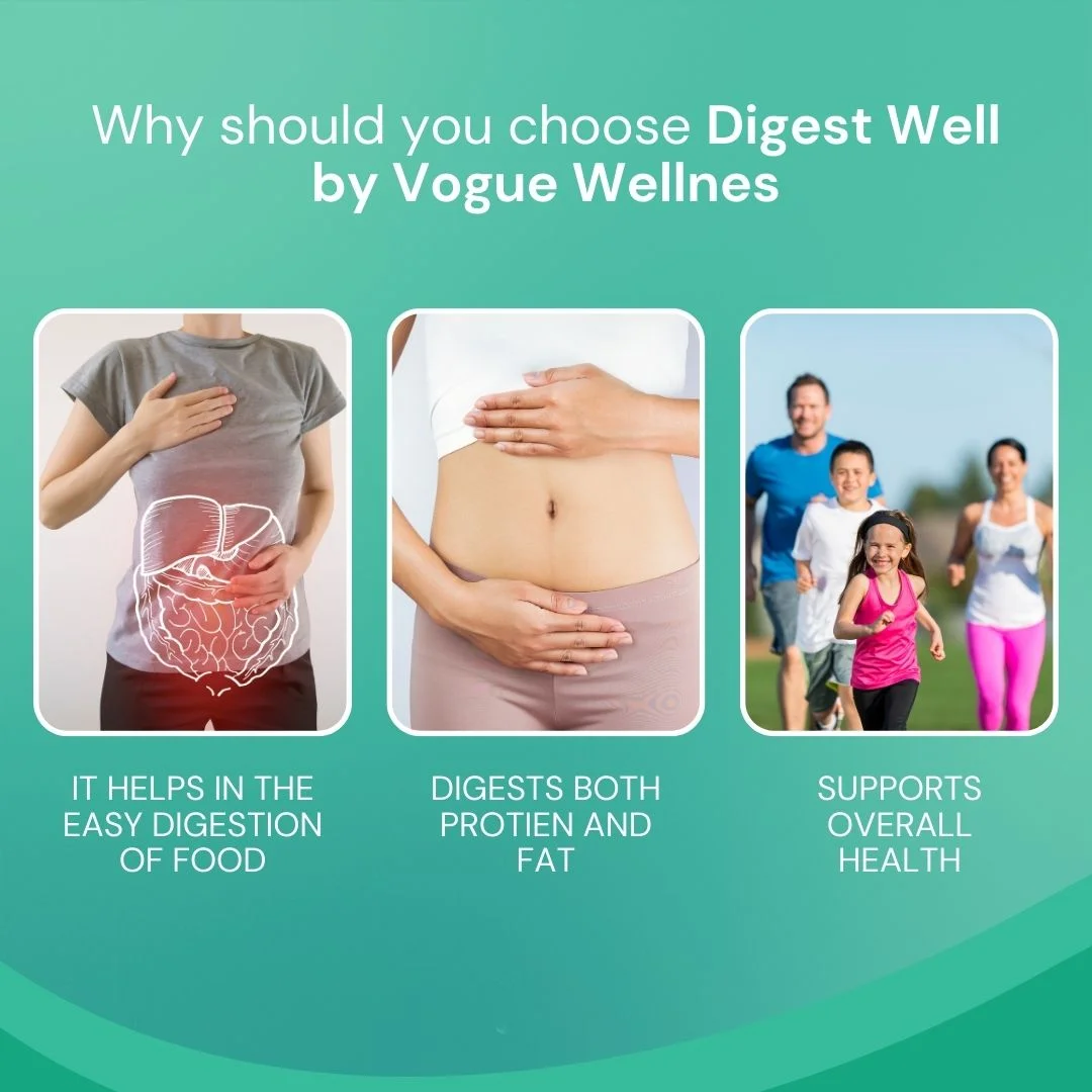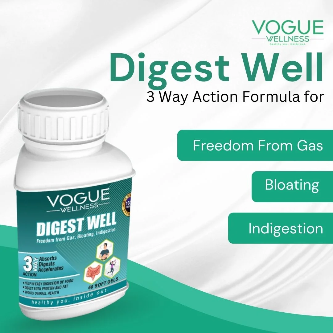 VOGUE Digest Well 60 Capsules is a powerful digestive health supplement formulated to promote better digestion, nutrient absorption, and gut balance. Enriched with natural digestive enzymes and herbal extracts, it helps relieve bloating, acidity, and indigestion for a light and comfortable feeling all day.