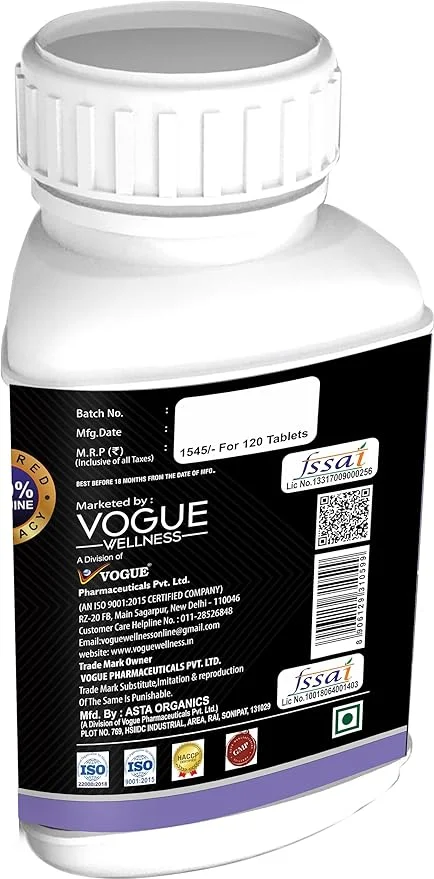 Vogue wellness L-Arginine tablets help recover after a long workout session with fewer signs of fatigue. The Tablets are also good for pre- or post-workout recovery after the gym or other exercise.