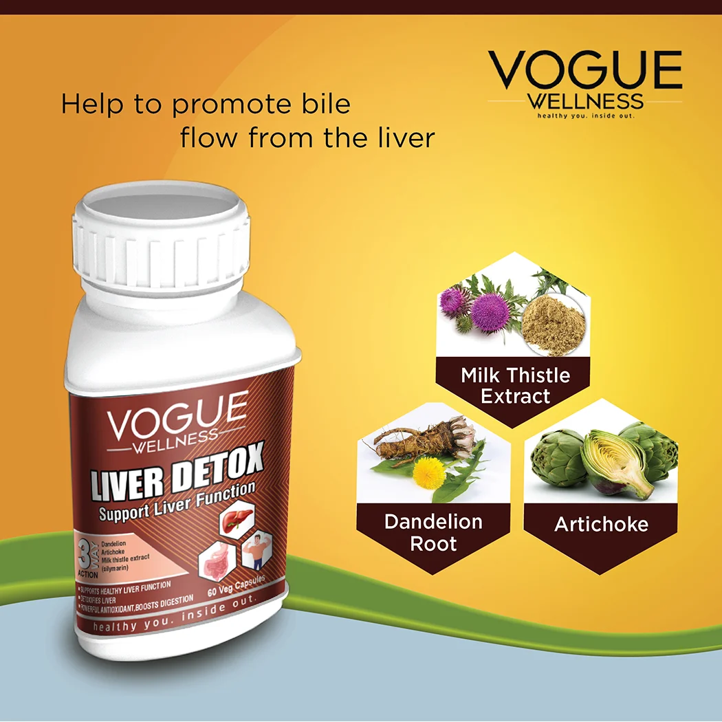 Vogue Liver Detox is a herbal-based liver health supplement designed to cleanse, protect, and rejuvenate your liver. Enriched with powerful natural extracts, it helps eliminate toxins, improve digestion, and support overall metabolic and digestive health.