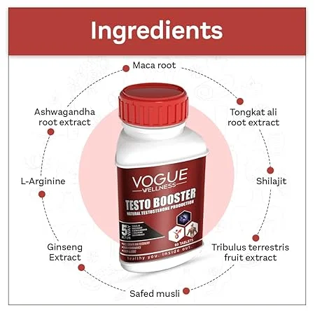 Testosterone is a male hormone responsible for libido and performance in men. Vogue Wellness Testo Booster tablets for men have testosterone that helps in revitalizing their masculinity. These supplements helps in maintaining a healthy metabolism and improve energy.
