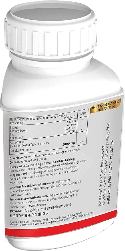 Vogue Wellness Tribulus Capsules are natural supplements designed to support overall wellness. The capsules contain Tribulus extract and other nutrients that have been traditionally used to promote vitality and well-being.