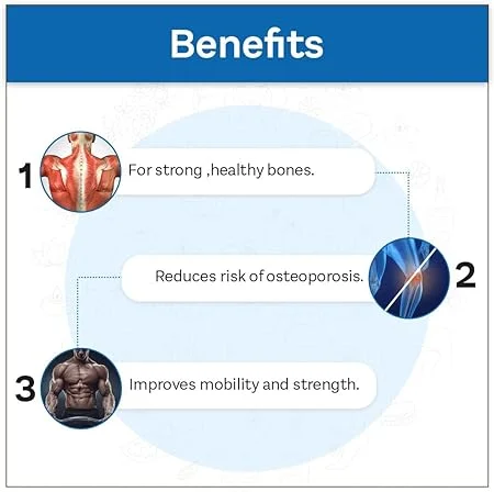 Complete bone health formula with premium-quality nutrients. Scientifically balanced combination for maximum effectiveness. Easy-to-swallow soft gel capsules for better absorption. Ideal for adults, athletes, and individuals with low calcium intake.